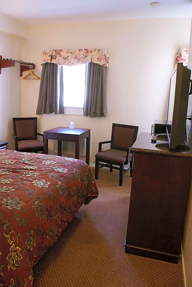 Our Queen Room - Non-Smoking is a spacious and elegant double room, perfect for a couple or a small family. It offers a cozy Queen size bed, a private bathroom with a bathtub, and modern amenities such as a flat-screen TV and air conditioning. Enjoy a comfortable stay in this wheelchair accessible room, featuring hardwood floors and a refrigerator for your convenience.